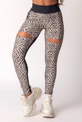 Love Fitness Black Leggings with Zebra Print and Cutouts